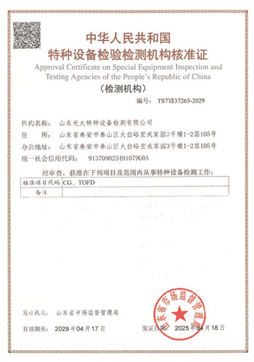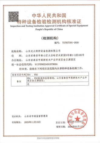 【特種設(shè)備檢驗(yàn)資質(zhì)和檢驗(yàn)范圍】 RD2 定期檢驗(yàn):第一、二、三類固定式壓力容器(不含超高壓容器,大型高壓者器、球形儲(chǔ)罐) RD3定期檢驗(yàn):第一、二類固定式壓力齊器(不含球形儲(chǔ)罐) DD2定期檢驗(yàn):公用管道 DD3定用檢:工業(yè)管道 QD2 定期檢驗(yàn):塔式起重機(jī)、流動(dòng)式起重機(jī),門座式起重機(jī),升降機(jī),纜索式起重機(jī)、梔桿式起重機(jī),額定起重量小于 10T(不含10T)的橋式起看機(jī)和門式起重機(jī) QD3定期檢驗(yàn):流動(dòng)式起重機(jī),塔式起重機(jī),升降機(jī) ND1定期檢驗(yàn):場(chǎng)(廠)內(nèi)專用機(jī)動(dòng)車輛 【...